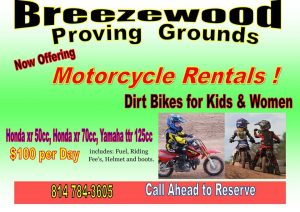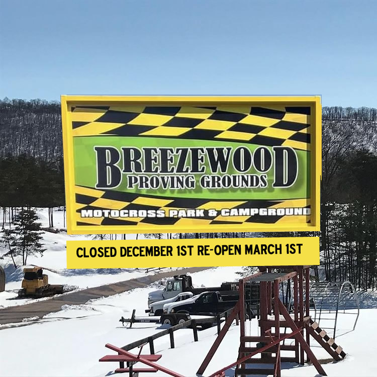 The Club House sells hot food during the riding seasons, a nice comfortable place to sit down and eat while perhaps watching your favorite videos on our big screen TV. Or sit outside to watch the riders on the track. We have a shower house with private showers for everyone to get cleaned up. Even a power wash station to clean up your rides. Lets not forget about the swimming hole with that big slide. Oh and in case you need parts to fix your ride there is the parts barn. At Breezewood Proving Grounds you not only get the best motocross tracks but added amenities to make your stay a awesome one.